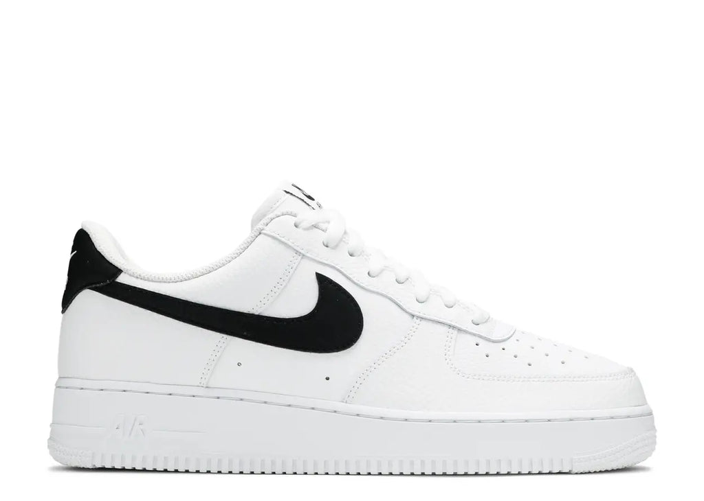 The Air Force 1 '07 'White Black' brings a classic two-tone look to its signature basketball construction. The shoe's upper is built with tumbled leather, finished in white and contrasted by black on the Swoosh branding, heel patch and tongue tag. Perforations on the toe box provide breathability, while underfoot, the midsole houses Air in the heel for cushioning. A concentric rubber outsole is included for traction.